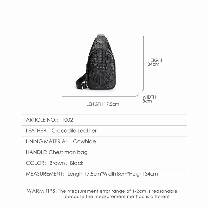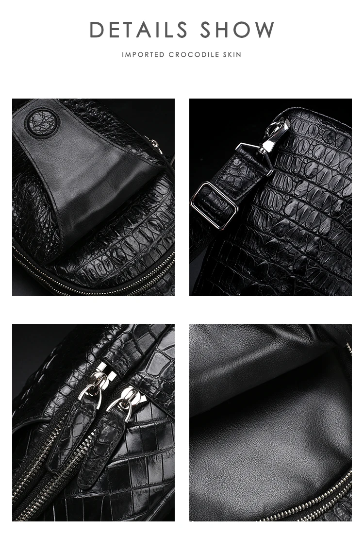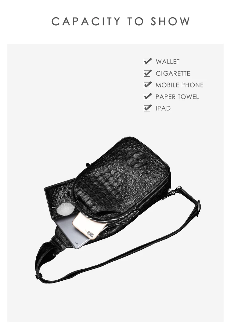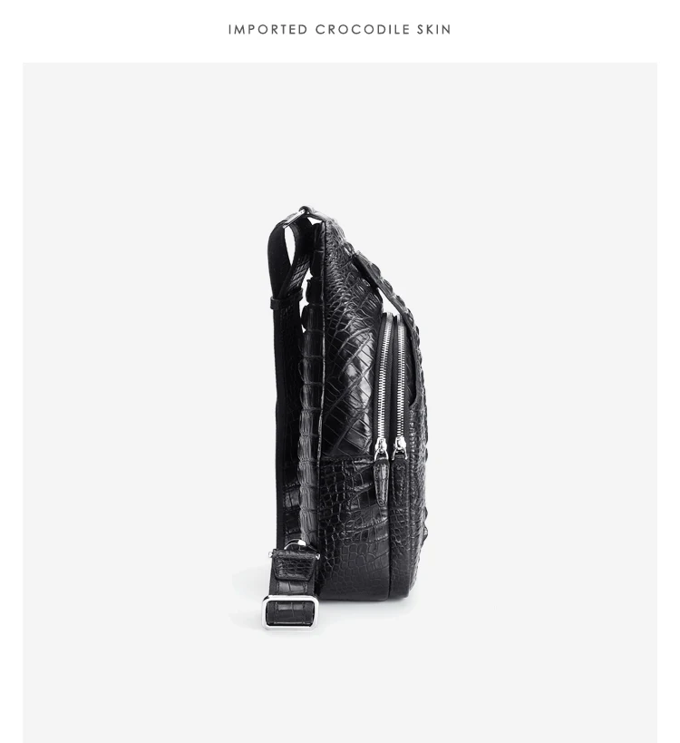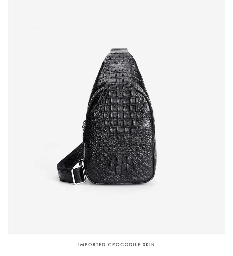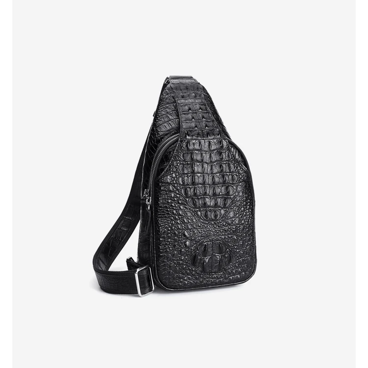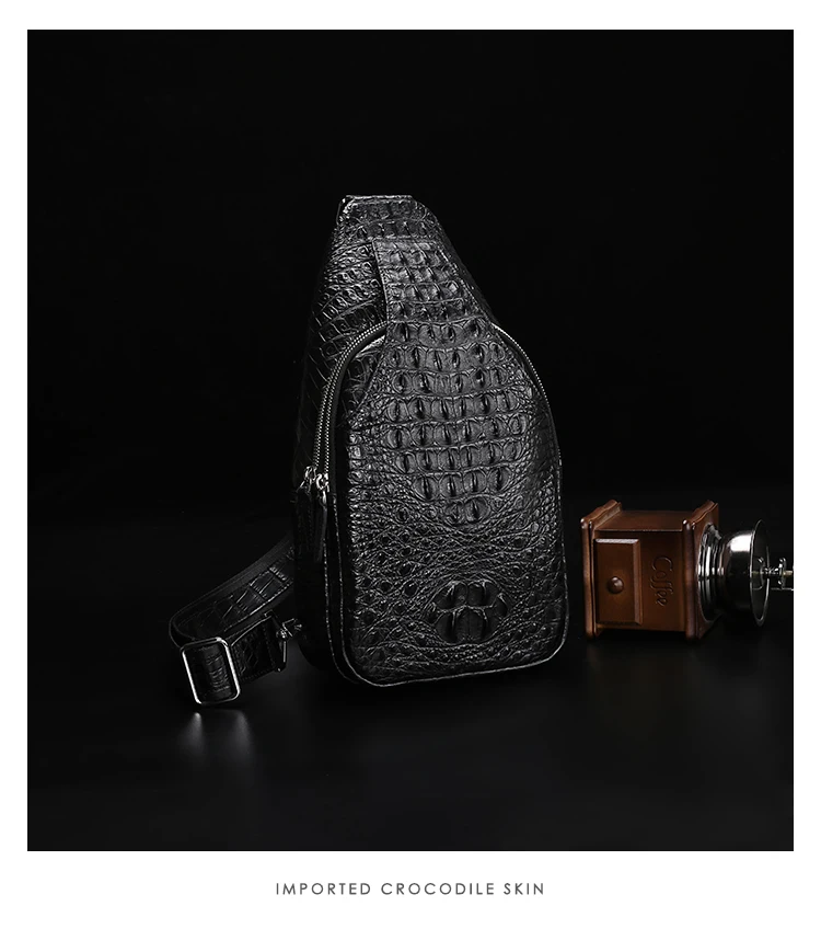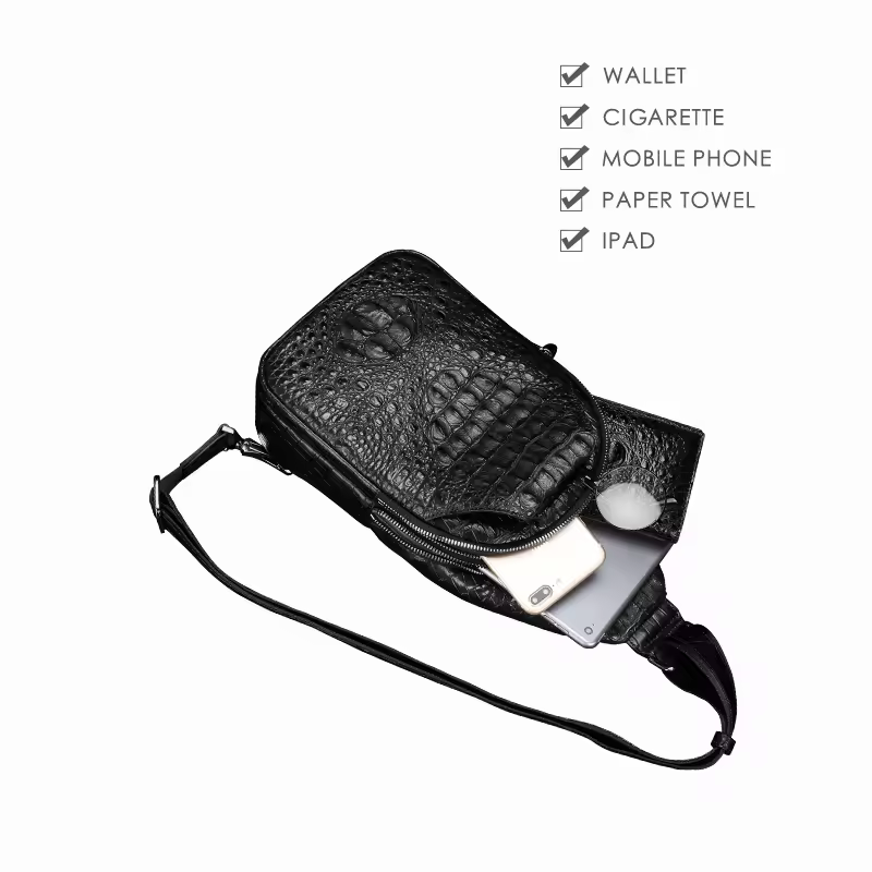 • Men's crocodile bone leather single-shoulder bag