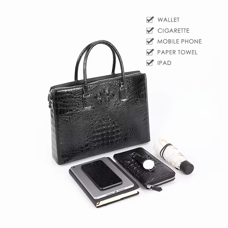 • Crocodile leather password-locked large-capacity business laptop bag