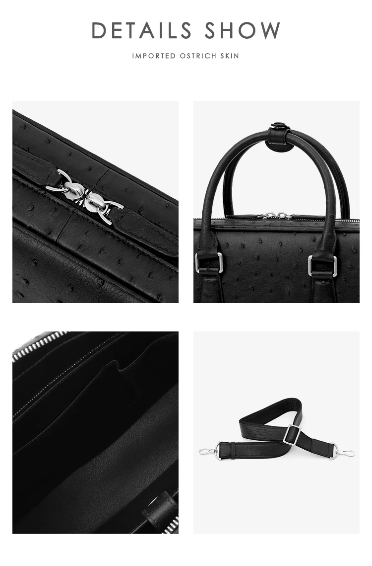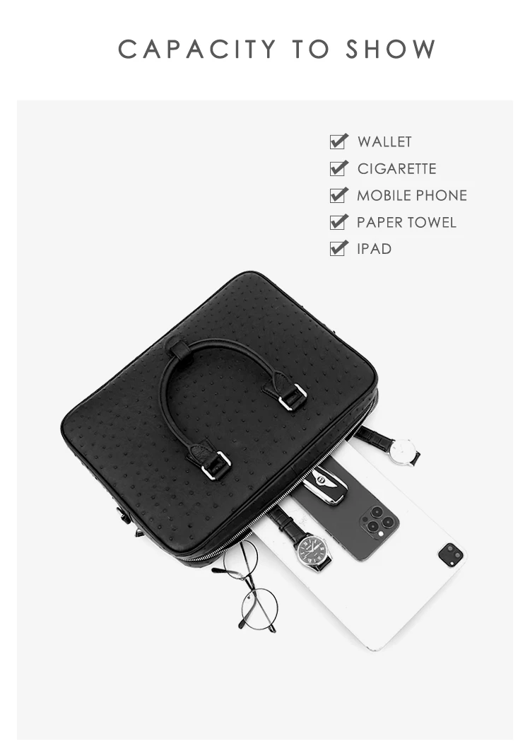 Ostrich leather large-capacity business bag
